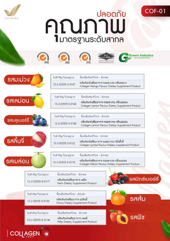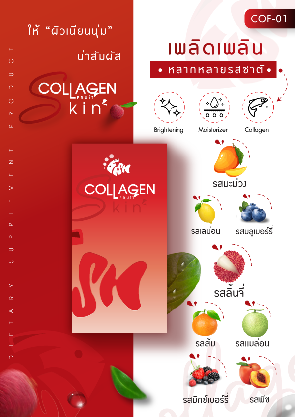 ผลิตภัณฑ์เสริมอาหาร คอลลาเจน สูตรผิวนุ่มเนียนใส กลิ่นผลไม้