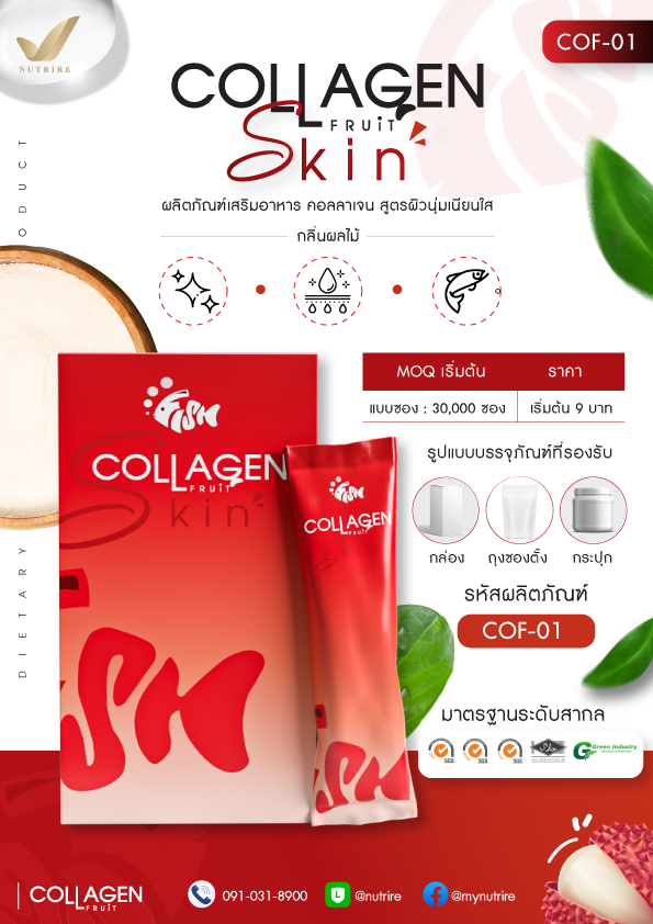 ผลิตภัณฑ์เสริมอาหารเพื่อผิวกระจ่างใส ชุ่มชื้น สกัดจากปลาทะเลน้ำลึก มีให้เลือกหลากหลายรสชาติ อุดมไปด้วยสารสกัดหลากหลายชนิด
